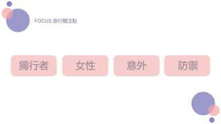 该文档包含了一份关于独自旅行的问卷调查,收集了受访者对旅行安全、交通、语言沟通、饮食以及社交的看法和习惯。结果显示,大部分女性对旅行质量要求较高,同时在独自旅行时的安全意识普遍不足,许多人倾向于提前规划和关注天气预报。调查还探讨了应对旅行中可能遇到的问题和解决方案。