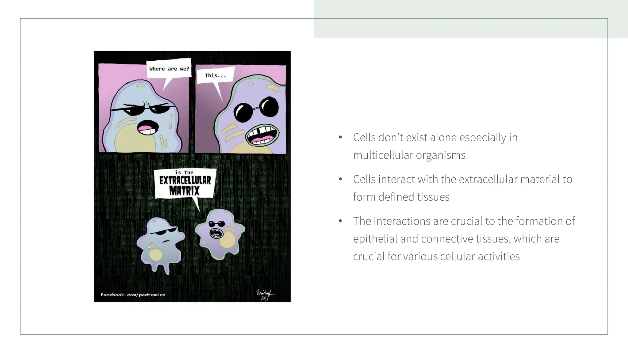 • Cells interact with the extracellular material to