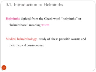 The document provides a comprehensive overview of helminths, focusing on their classification, life cycles, and medical implications. It highlights various human intestinal nematodes such as Ascaris lumbricoides, Trichuris trichiura, and Enterobius vermicularis, discussing their transmission, clinical symptoms, and laboratory diagnosis. The document also addresses prevention and treatment strategies, emphasizing the importance of hygiene to control infections.
