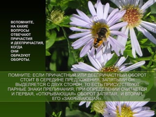 Документ объясняет правила обособления и необособления определений и обстоятельств в русском языке, включая причастные и деепричастные обороты. Упоминаются примеры и условия, при которых запятые выставляются или не выставляются. Освещаются различные случаи использования определений и обстоятельств, а также важные грамматические правила.