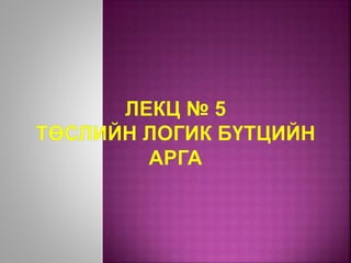 Логик бүтцийн шинжилгээ төлөвлөлт хийх дэс дараалал.