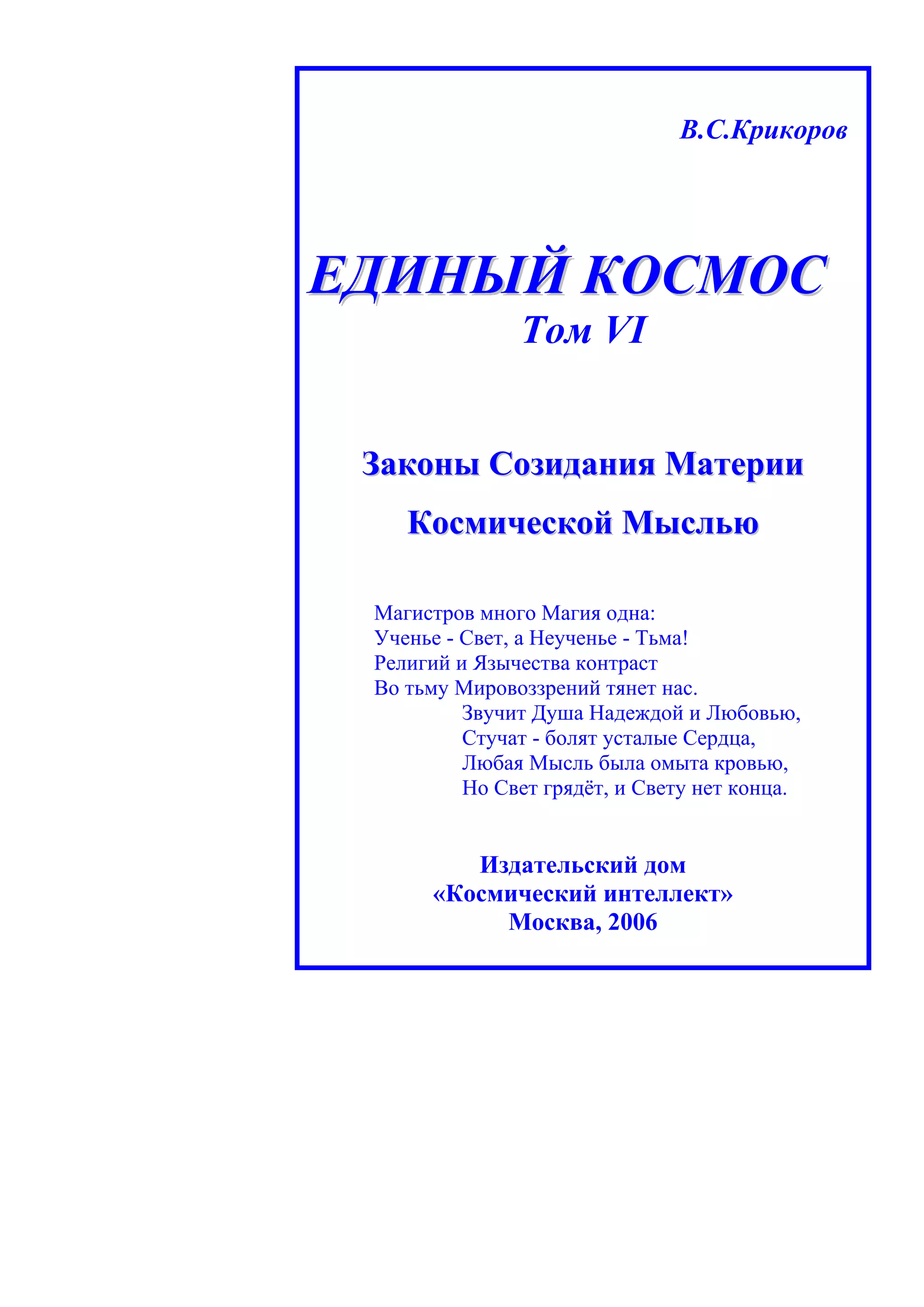 1. Тьма и Свет Единого Космоса