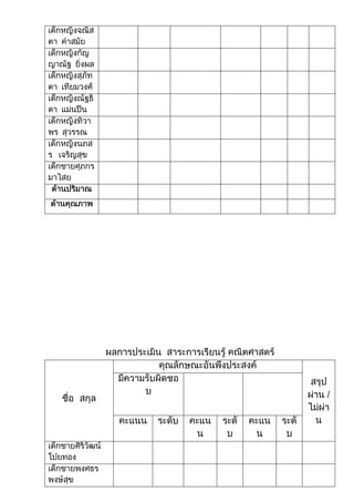 วิเคราะห์หลักสูตรการสอนคณิต DOCX