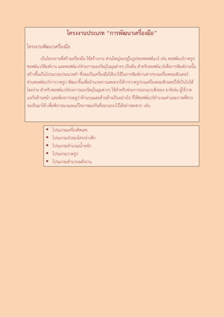 โครงงานประเภท “การพัฒนาเครื่องมือ” โครงงานพัฒนาเครื่องมือ