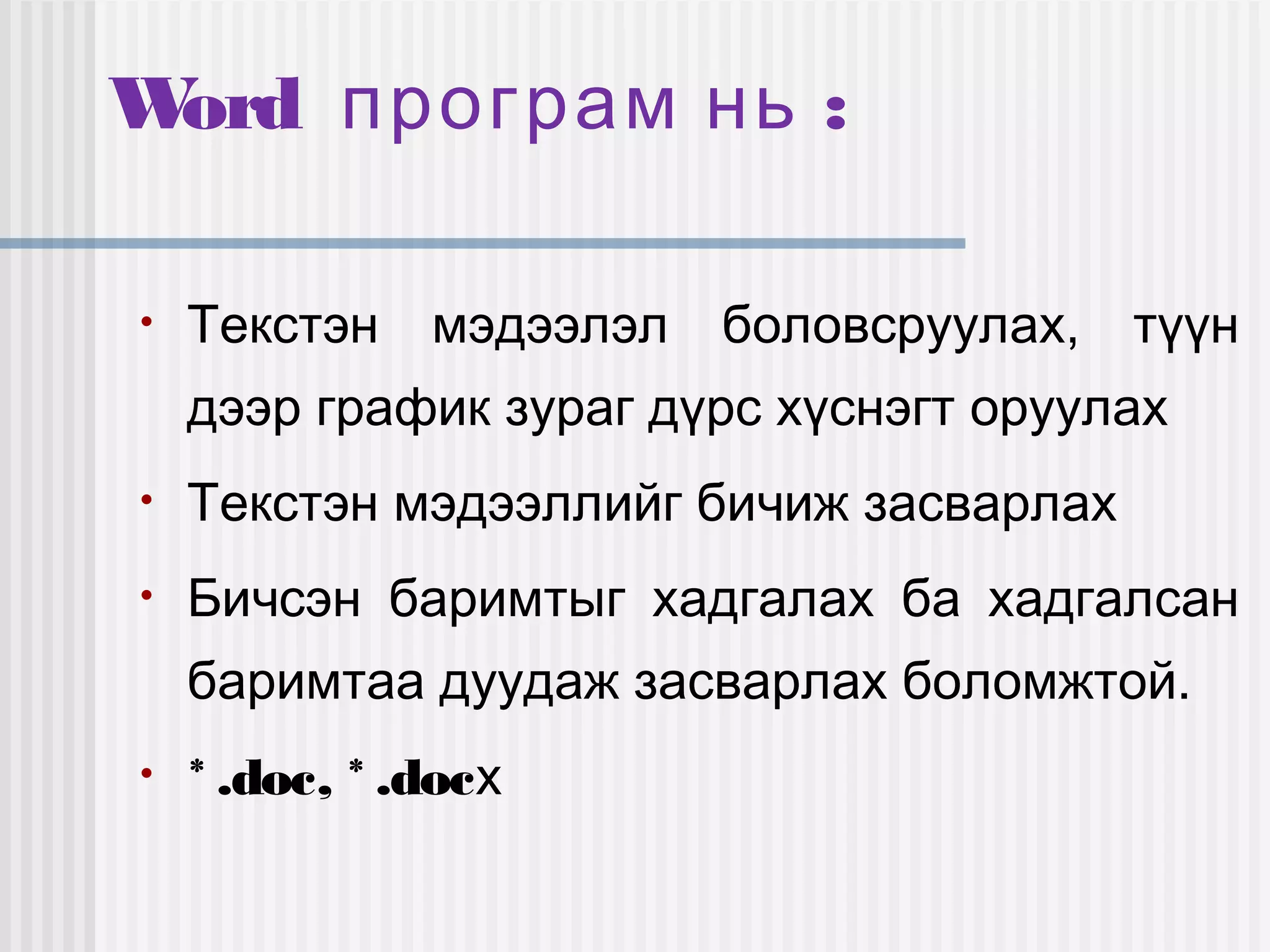 Microsoft word программын туха _ _ _}____-___ f 7 PPTX