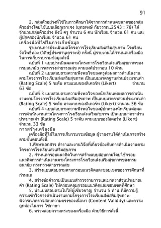 งานตามโครงการโรงเรียนส่งเสริมสุขภาพ เป็นแบบมาตราส่วนประมาณค่า