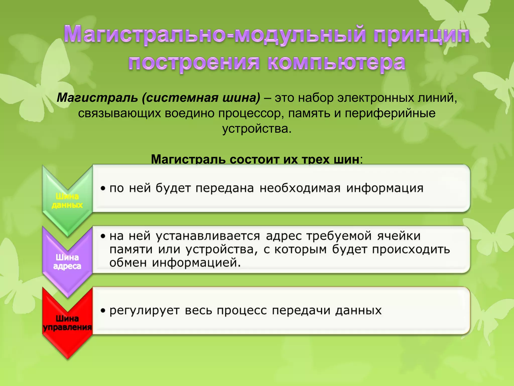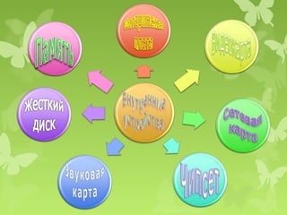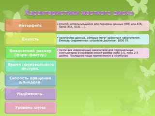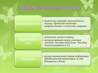 Документ описывает архитектуру и основные компоненты компьютера, включая магистрали, процессоры, оперативную память и различные устройства хранения данных. Также рассматриваются функции материнской платы и чипсета, а также подключаемые устройства, такие как видео- и звуковые адаптеры и сетевые карты. В заключение обсуждаются различные типы носителей информации, включая жесткие диски, CD и DVD, а также коммуникационные порты для подключения периферийного оборудования.