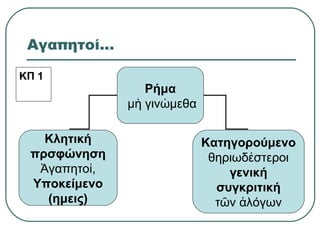 ώ Κλητική πρσφώνηση γαπητο ,Ἀ ί Υποκείμενο (ημεις) Κατηγορούμενο θηριωδ στεροιέ γενική συγκριτική τ ν λόγωνῶ ἀ ΚΠ 1