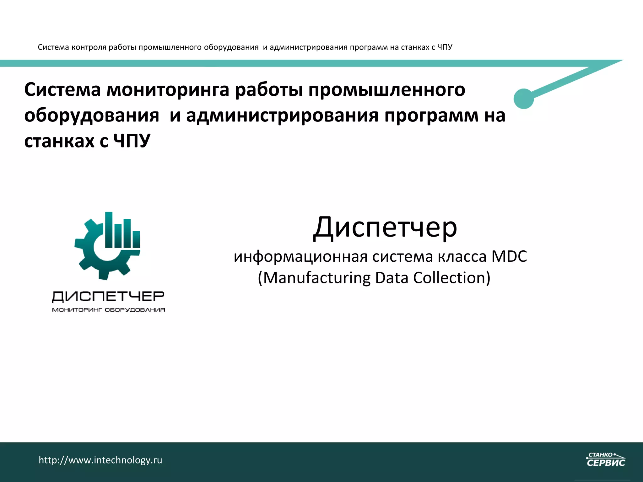 Документ описывает систему контроля работы промышленного оборудования и администрирования программ на станках с ЧПУ, разработанную ООО ИЦ «Станкосервис». Система обеспечивает мониторинг и управление работой станков, контроль энергозатрат, управление программами и организацию технического обслуживания, а также возможность удаленного доступа и интеграции с другими системами. Результаты внедрения системы включают увеличение коэффициента использования оборудования и повышение производительности труда.