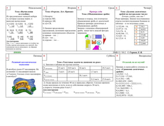 Документ представляет собой учебный план по математике для 5 класса, охватывая темы от вычислений и дробей до геометрии и текстовых задач. Каждая неделя содержит задания и темы на день, а также рекомендации по ведению тетради. Документ подчеркивает важность ежедневной практики и развития математического мышления у учащихся.