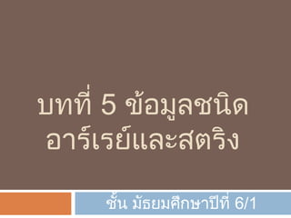 บทที่ 5 ข้อมูลชนิดอาร์เรย์และสตริง 6.1 PPT