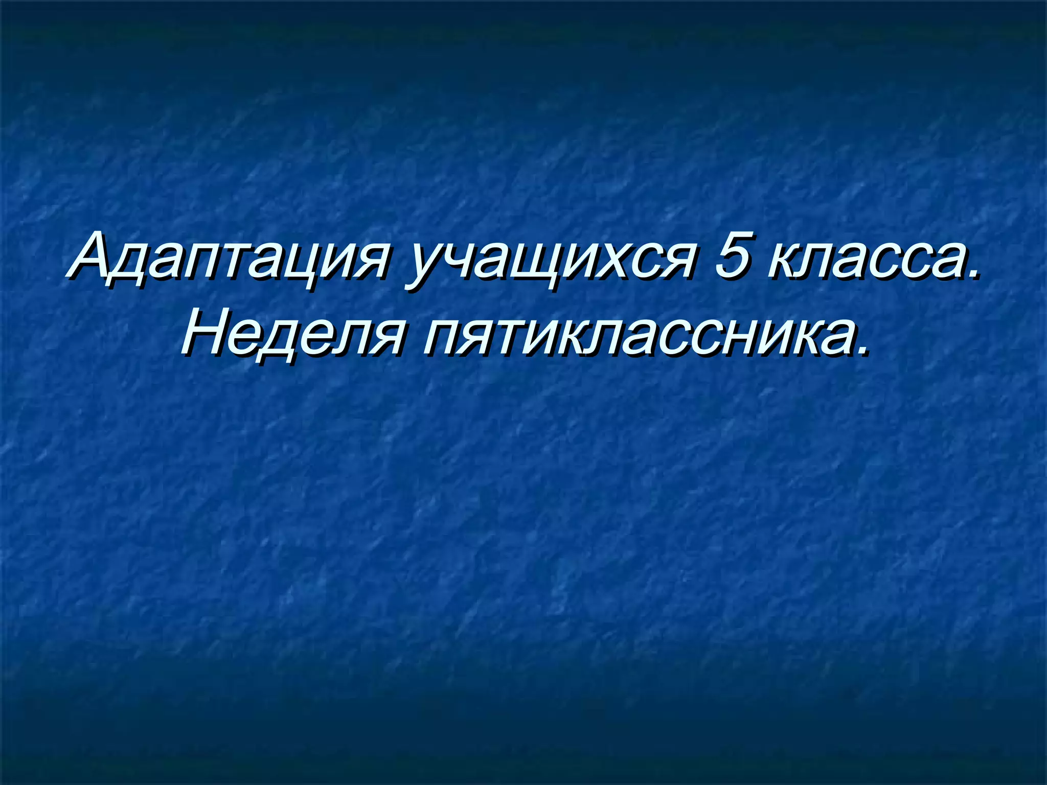 Документ посвящен адаптации учащихся 5 класса к новой учебной среде и описывает мероприятия для облегчения этого процесса. В нем рассматриваются психологические особенности детей в переходный период, организационные аспекты проведения 'недели пятиклассника', а также анализируются результаты контрольных работ и уровень учебной успеваемости. Подчеркивается важность работы учителей и родителей в создании условий для успешной адаптации школьников.