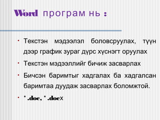 Microsoft word программын туха _ _ _}____-___ f 7 PDF