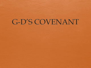 4) Specific biblical covenants with Noah, Abraham, Moses, and David are summarized highlighting the key terms of each agreement.