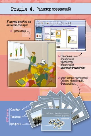 4.1. Комп’ютерна презентація та її об’єкти ..................................132