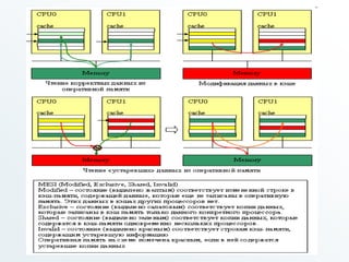 Документ рассматривает организацию систем памяти ЭВМ, включая основные характеристики, типы кэш-памяти и методы их обновления. Отмечается важность кэш-памяти как высокоскоростного буфера между процессором и основной памятью, а также представлены различные архитектуры кэша и их эффективность. Обсуждаются методы повышения эффективности доступа к данным, такие как предвыборка и механизмы записи в кэш, что позволяет оптимизировать время доступа к памяти.