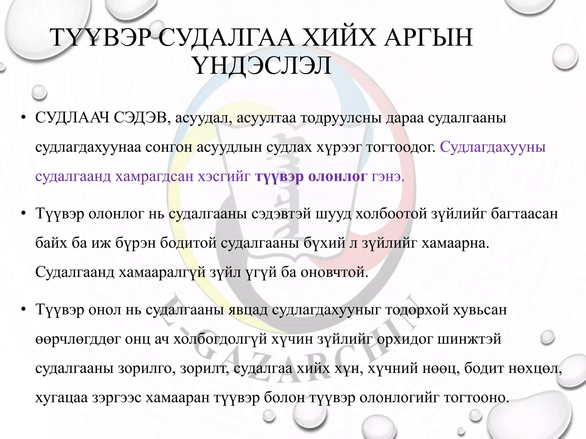 ТҮҮВЭР СУДАЛГАА ХИЙХАРГЫН