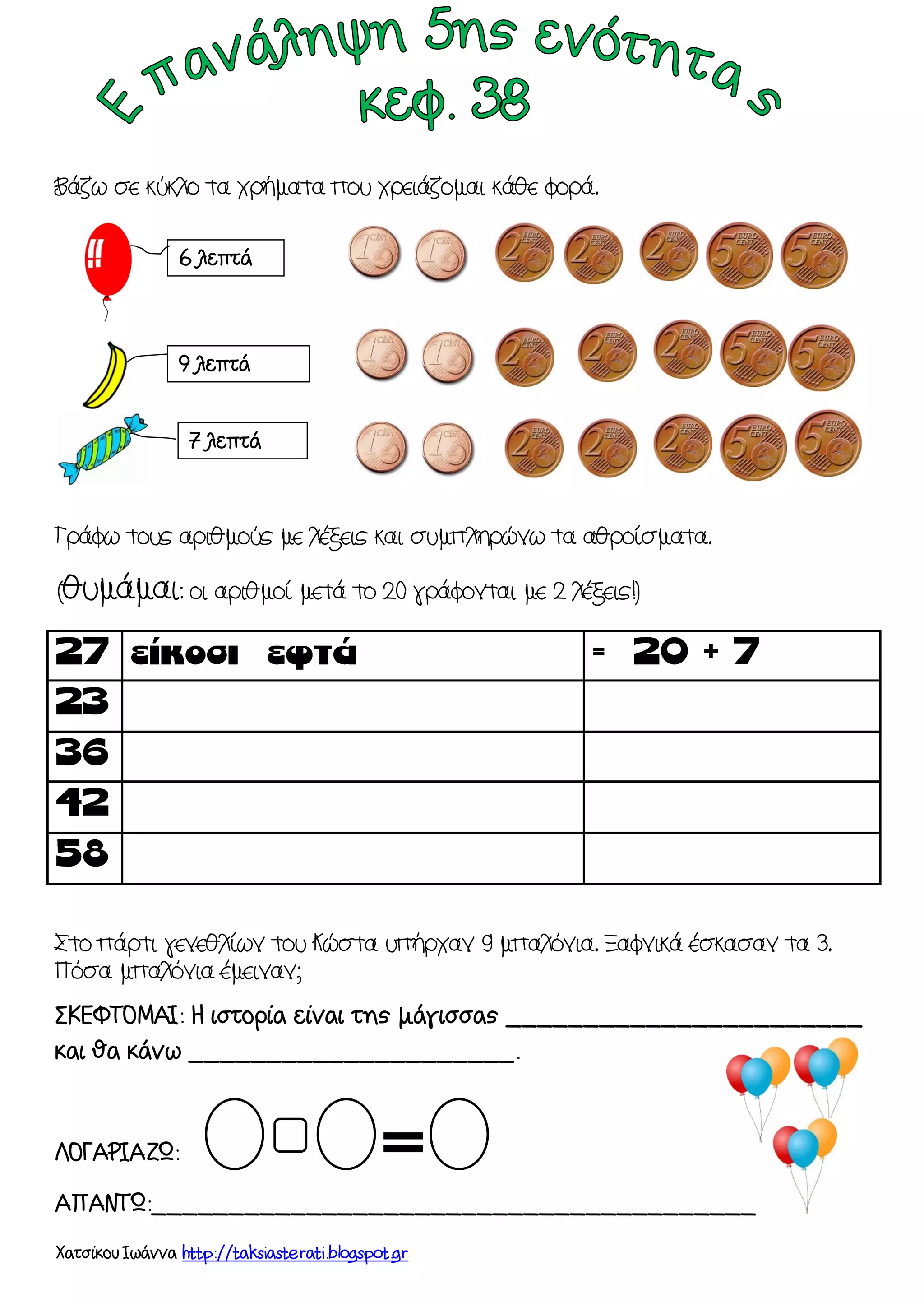 (θυμάμαι: οι αριθμοί μετά το 20 γράφονται με 2 λέξεις!)