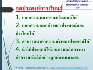 4. ถา มี 4 ประพจน์ ไดค่าความจริต ퟐퟒ = 16 กรณี