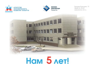 Документ описывает развитие Тольяттинского бизнес-инкубатора, включая информацию о первой и второй очередях, которые были запущены в 2009 и 2012 годах соответственно. Бизнес-инкубатор поддерживает малый и средний бизнес, предоставляя рабочие места и необходимую инфраструктуру для резидентов. В 2015 году планируется создание третьей очереди инкубатора, что обеспечит дополнительные площади и услуги для предпринимателей.