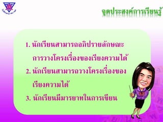 การวิเคราะห์และประเมินคุณค่าวรรณคดีและวรรณกรรม Similar to หน่วยที่ 5 การวางโครงเรื่องของเรียงความ