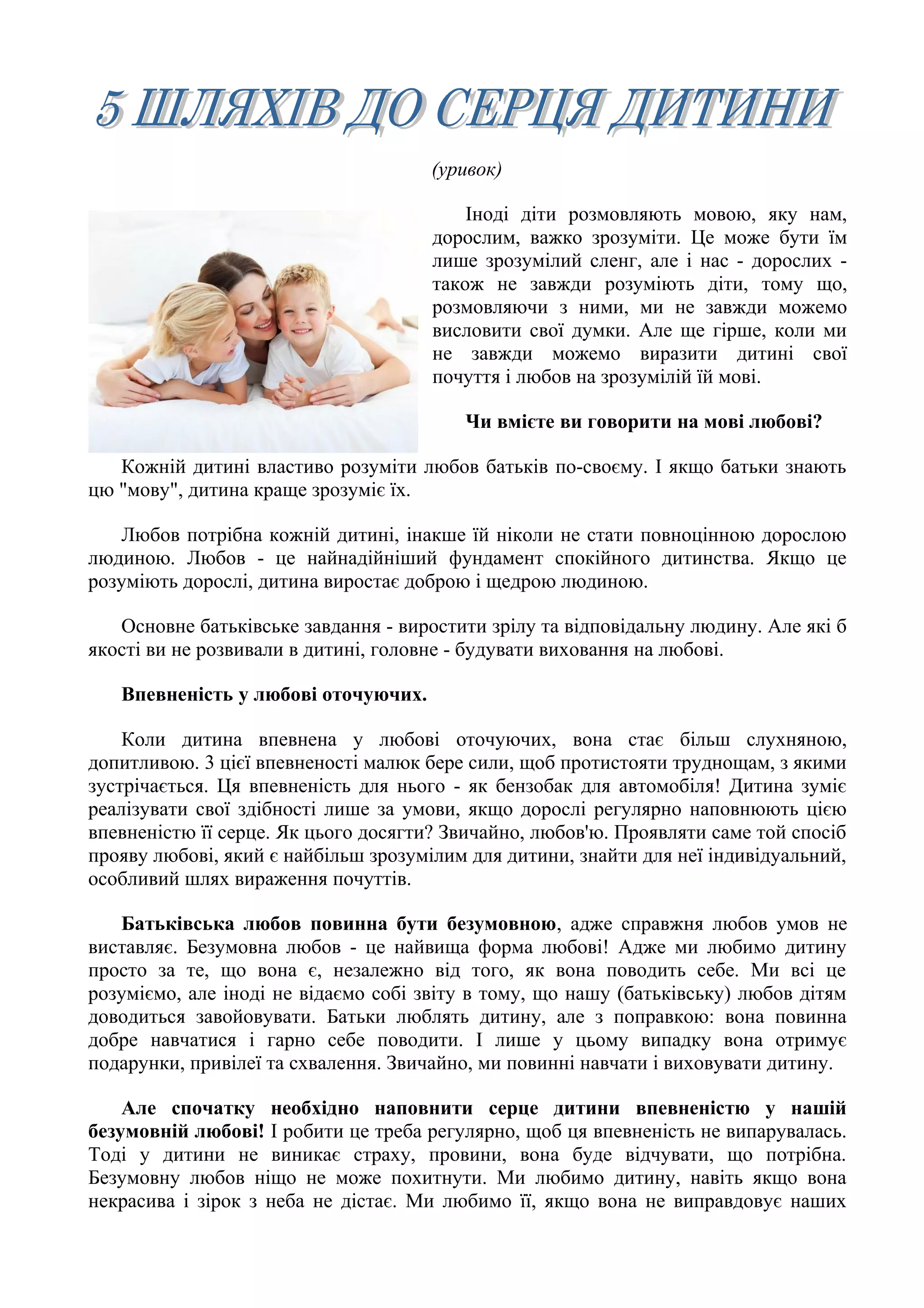 любов, але кожна дитина потребує її. Існує 5 способів (основних), якими діти