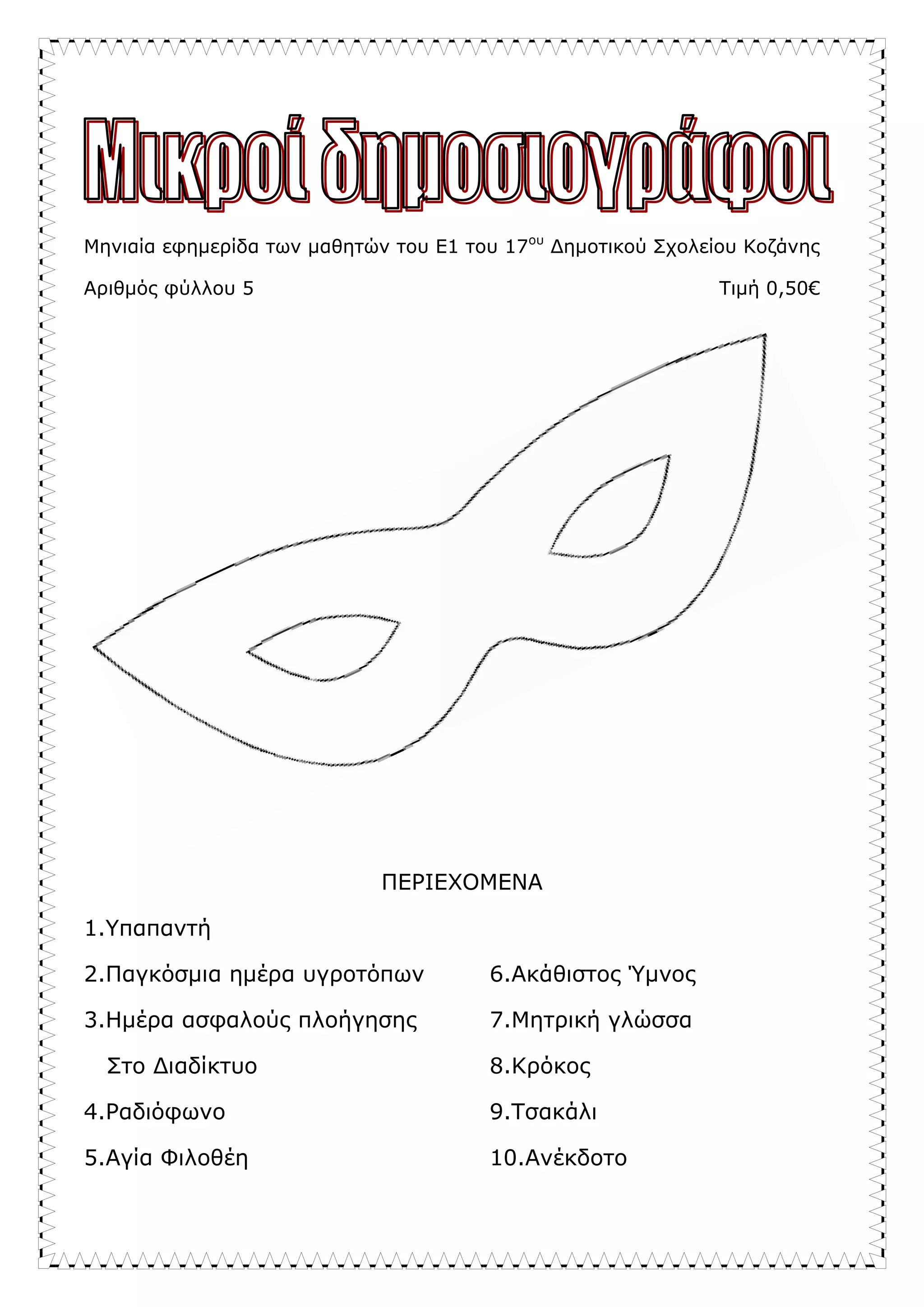 Μηνιαία εφημερίδα τωνμαθητών του Ε1 του 17ου