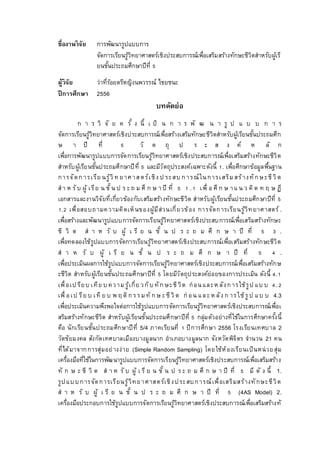 การพัฒนารูปแบบการ จัดการเรียนรู้วิทยาศาสตร์เชิงประสบการณ์เพื่อเสริมสร้างทักษะชีวิตสำหรับผู้เรียนชั้นประถมศึกษาปีที่ 5