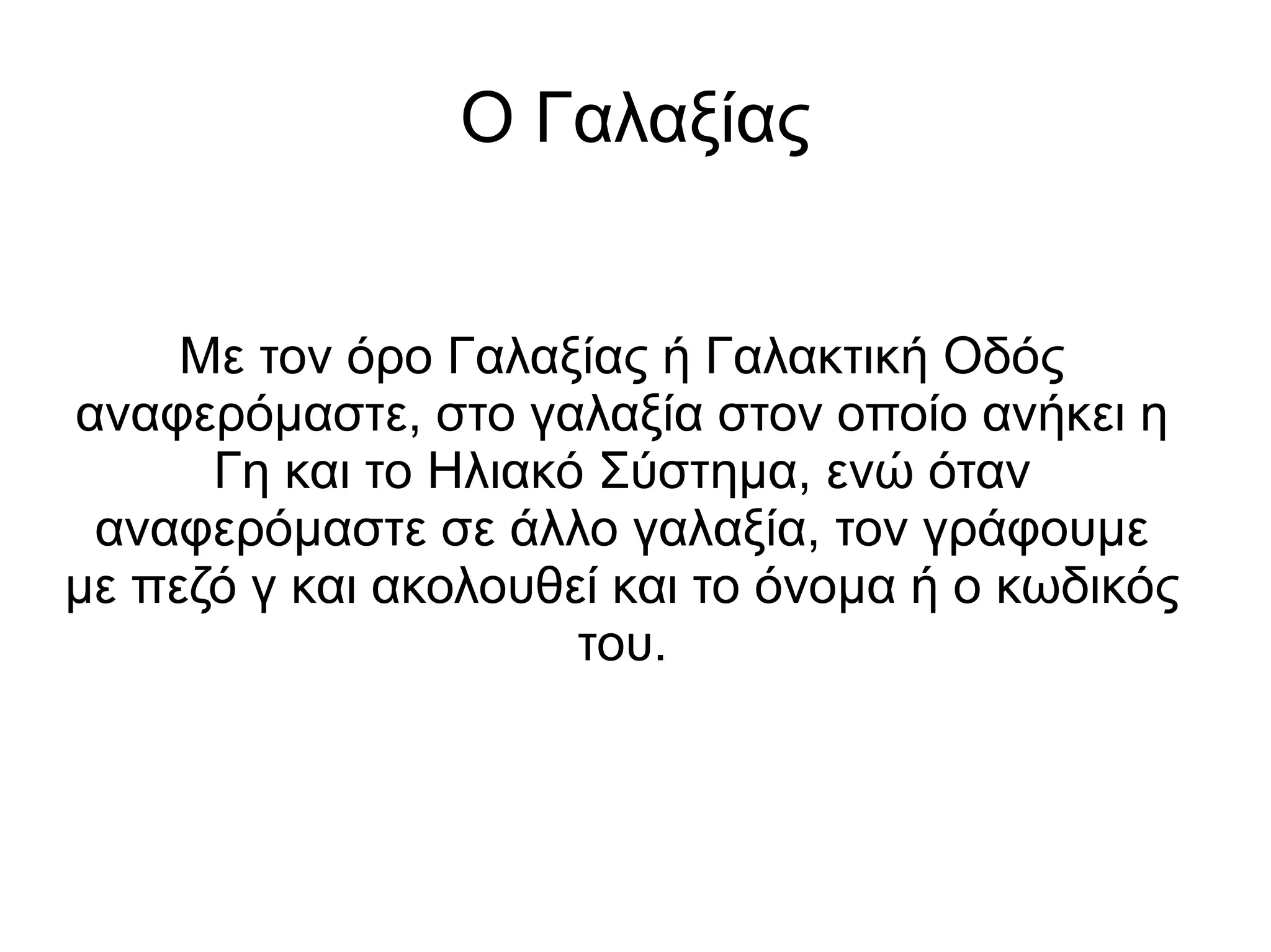 αναφερόμαστε, στο γαλαξία στον οποίο ανήκει η