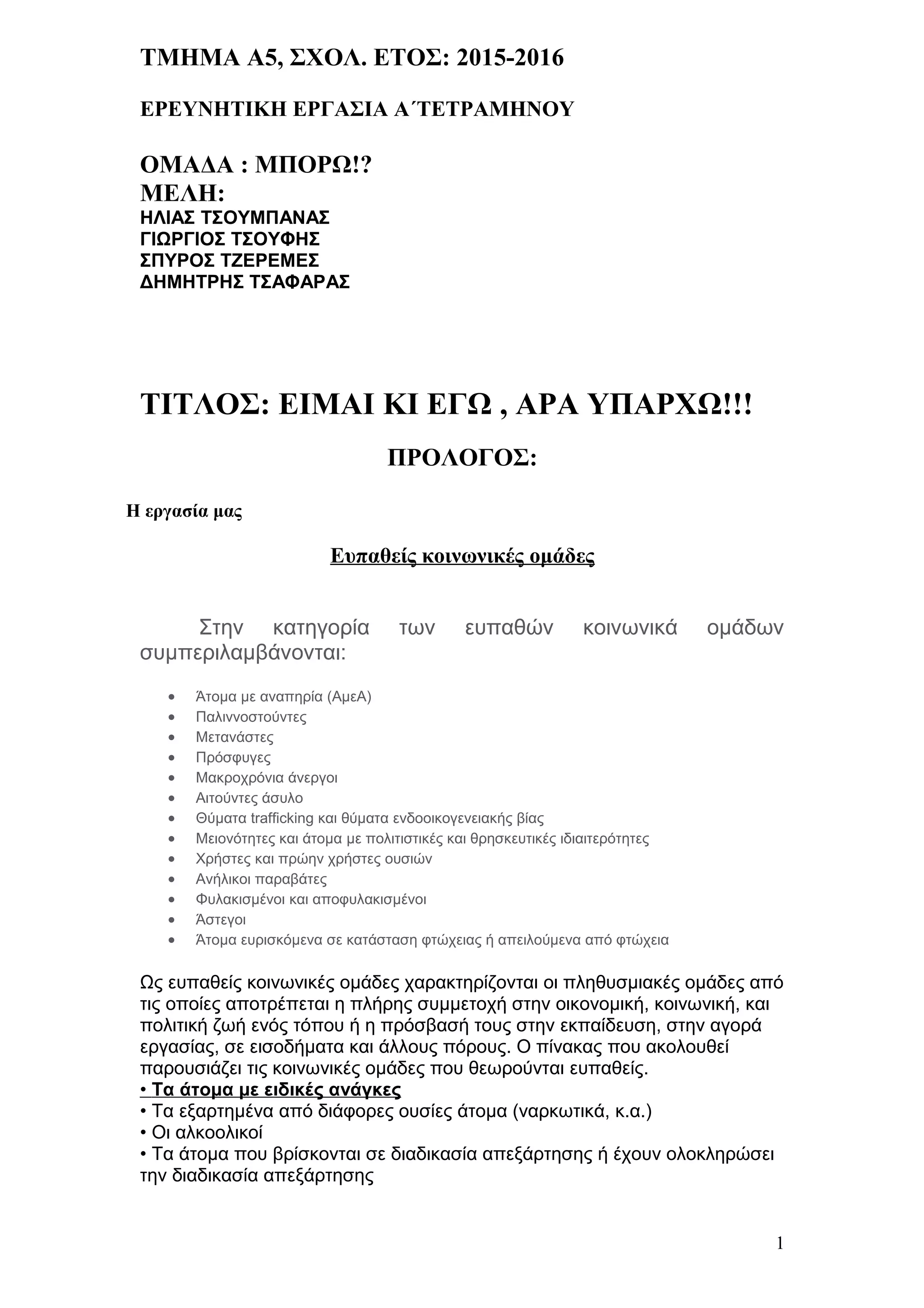 ΤΙΤΛΟΣ: EIMAI KI ΕΓΩ , ΑΡΑ ΥΠΑΡΧΩ!!!
