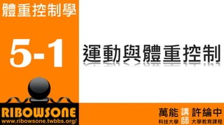 本文件讨论了运动在体重控制中的重要性,强调规律的锻炼有助于减少体脂肪且维持肌肉组织,以提高基础代谢率和减肥效果。通过两种方式控制体重:减少热量摄取与增加热量消耗是关键。建议进行负重运动如举重,以帮助保持肌肉,减肥后也需继续保持运动和健康饮食习惯,以防体重反弹。