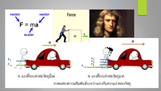 ของนิวตัน ก. ประกอบด้วยแรงสองแรง ข. มีขนาดเท่ากันและมีทิศตรงกันข้าม ค. เป็นแรงที่ทาให้แรงลัพธ์บนวัตถุมีค่าเป็น 0 ง. เป็นแรงที่กระทาบนวัตถุต่างชนิดกัน