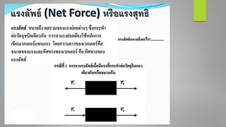 แบบฝึกหัดทบทวนความเข้าใจ จงอธิบายความหมายของแรงลัพธ์หรือแรงสุทธิมาอย่างละเอียด นักเรียนจะมีวิธีการอย่างไรบ้างในการคานวณหาค่าของแรงลัพธ์หรือแรงสุทธิที่กระทาต่อวัตถุ
