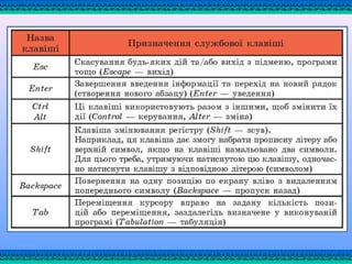 літер і символів, кожна клавіша може працювати в кількох