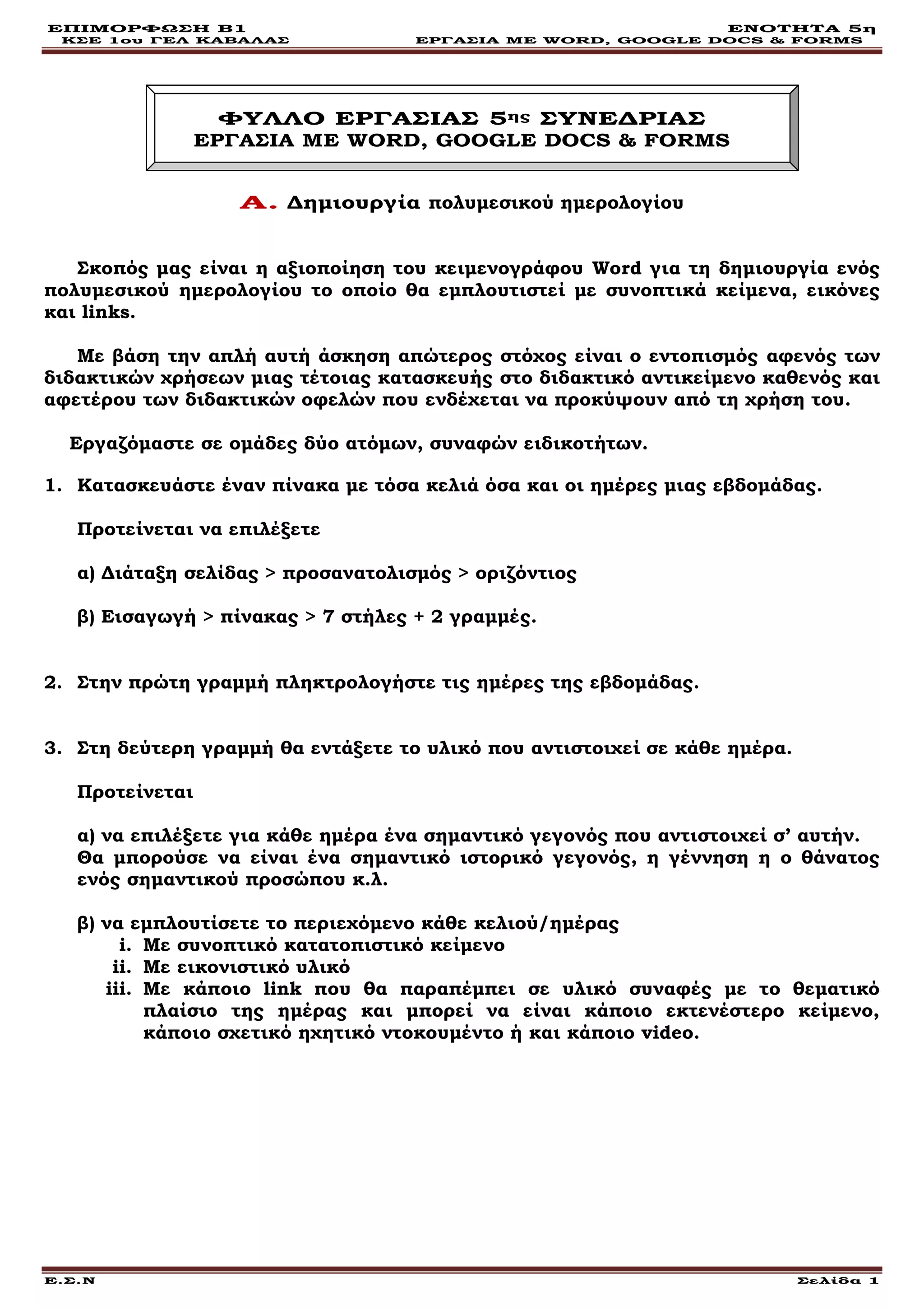 ΚΣΕ 1ου ΓΕΛ ΚΑΒΑΛΑΣ ΕΡΓΑΣΙΑ ΜΕ WORD, GOOGLE DOCS & FORMS