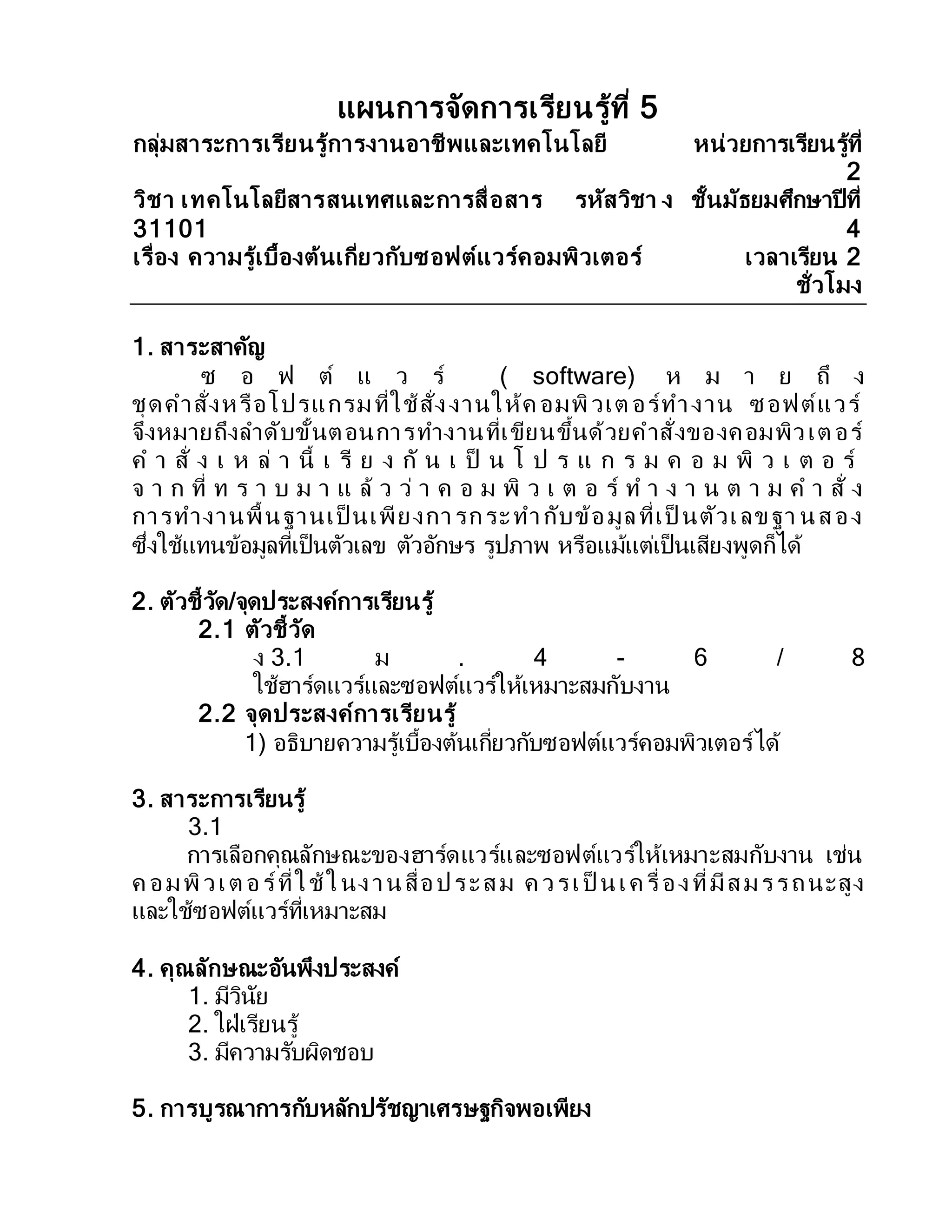 เรื่อง ความรู้เบื้องต้นเกี่ยวกับซอฟต์แวร์คอมพิวเตอร์ เวลาเรียน 2