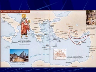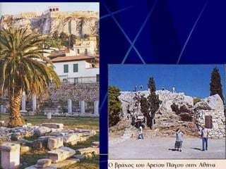 ΤΟ ΚΗΡΥΓΜΑ ΣΤΟΝΑΡΕΙΟ ΠΑΓΟ Αφορμή πήρε ο απόστολος Παύλος από ένα βωμό στον άγνωστο θεό Μίλησε για την ανάσταση του Χριστού Αυτό δεν άρεσε στους Αθηναίους γιατί θεωρούσαν το σώμα τάφο της ψυχής Πίστεψε μόνο μια μικρή ομάδα (ανάμεσά τους ο Διονύσιος ο Αρεοπαγίτης και η Δάμαρις)