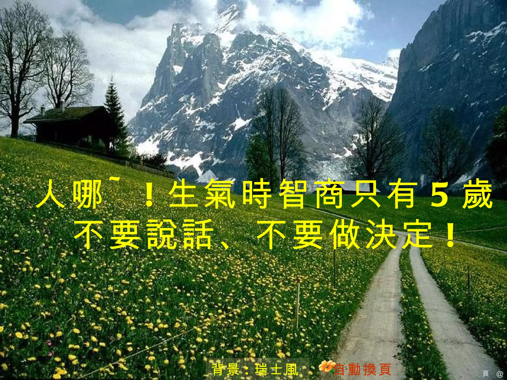 5 歲 不要說話、不要做決定 ! 背景 : 瑞士風光 自動換頁