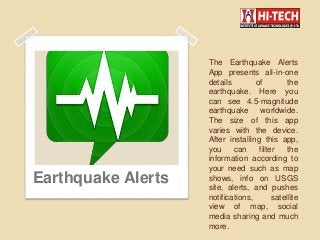 Earthquake is a biggest natural tragedy we can't stop to come. But you can save yourself if you stay alert. Here we are showing some Android Application which alert you before earthquake