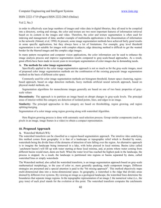 This document presents a new framework for color image segmentation using a combination of watershed and seed region growing algorithms. It begins with an introduction to image segmentation and discusses challenges with traditional gray-scale methods when applied to color images. The document then proposes a method using automatic seed region growing integrated with the watershed algorithm. Experimental results on an input image are shown to demonstrate the segmentation process and output images. The framework is concluded to improve upon traditional gray-scale methods for segmenting the richer information in color images.