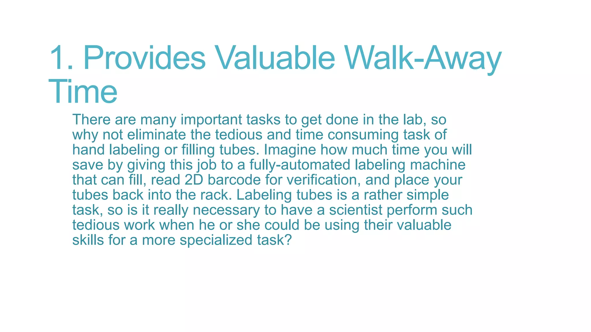 Laboratory automation provides several benefits, including valuable walk-away time for scientists, a reduction in repetitive injuries, and cost savings by decreasing the need for manual labor. Automation also minimizes human error in sample tracking and can enhance lab efficiency, ultimately resulting in better patient satisfaction. Lastly, modern automation systems are designed with flexibility and space-saving capabilities in mind.