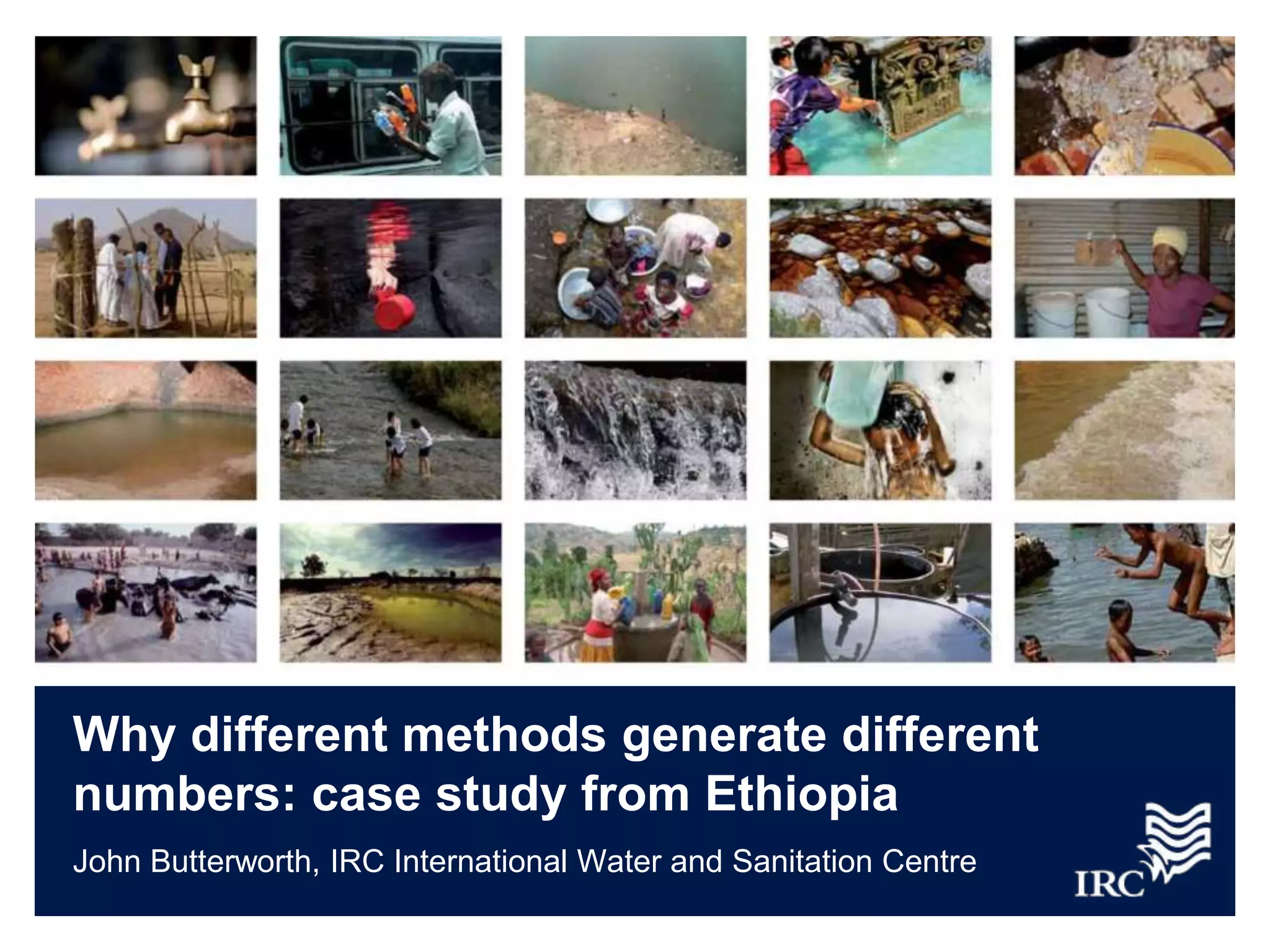 This document discusses different methods for monitoring access to water in Ethiopia and how they generate varying results. It notes that data collected directly from water providers and that collected from household surveys will naturally differ. The Ministry of Water collects provider data while the Central Statistical Agency collects household survey data, though a National WASH Inventory collects both. Neither method is considered better or worse, as each has strengths and weaknesses. Estimates for water access in Ethiopia have varied between 39-49% depending on the source. Reconciling these parallel monitoring processes and making data more transparent are priorities moving forward.