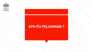 Dokumen ini membahas tentang dimensi pelayanan, merujuk pada berbagai pendapat ahli mengenai definisi dan proses pelayanan. Terdapat lima dimensi pelayanan yang diidentifikasi: tangibles, reliability, responsiveness, assurance, dan empathy, masing-masing dengan contoh konkret penerapannya. Selain itu, dokumen ini juga menyertakan tautan ke video yang menjelaskan lebih lanjut tentang layanan unik yang berkaitan dengan dimensi pelayanan.