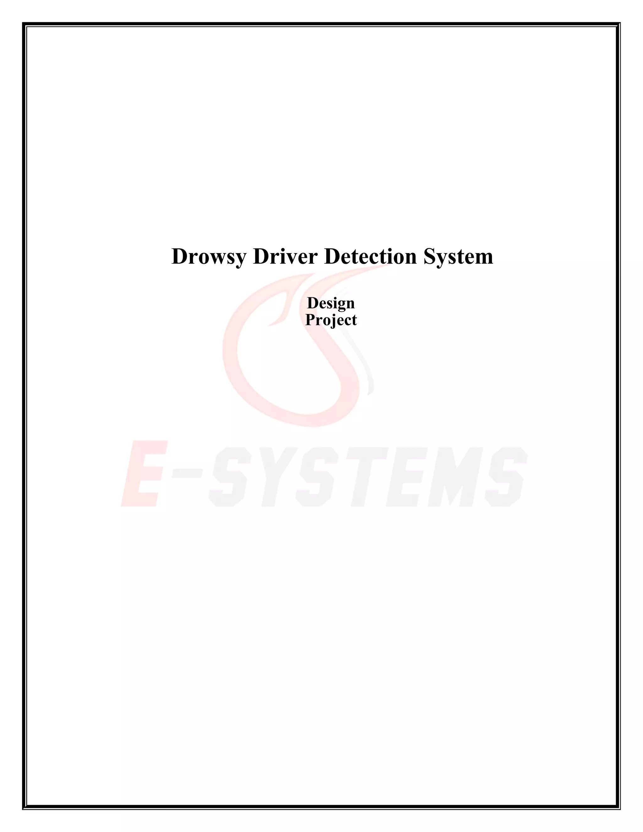 The document describes the design of a Drowsy Driver Detection System. The system uses a camera to monitor the driver's face and eyes in order to detect fatigue. It analyzes the video input to locate the eyes and determine if they are open or closed. If the eyes are closed for 5 consecutive frames, the system concludes the driver is falling asleep and issues a warning signal. The system is designed to work in both day and night conditions using a machine vision based approach with the goal of developing a non-intrusive real-time fatigue monitoring system.