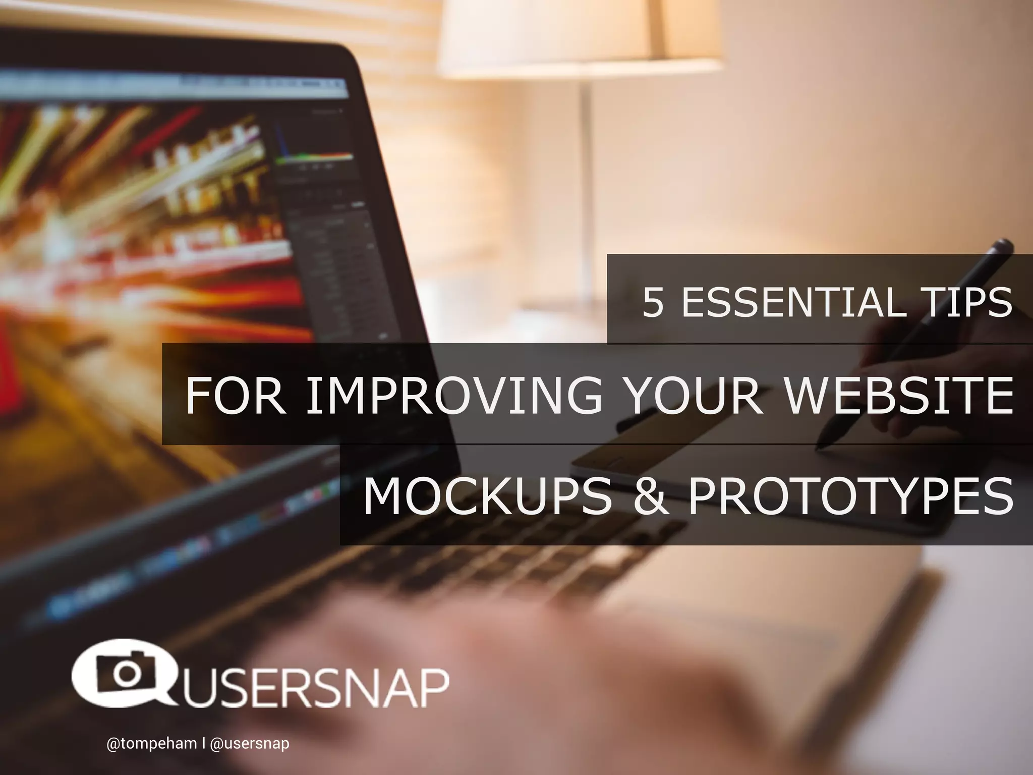 The document presents five essential tips for improving website mockups and prototypes, emphasizing the need to understand prototype fidelity, identify problems by asking 'why,' and use realistic assets. It encourages failing fast and fixing issues quickly through transparent communication and involves all project stakeholders. Additionally, it suggests using different tools for various prototyping stages to enhance creativity and collaboration.