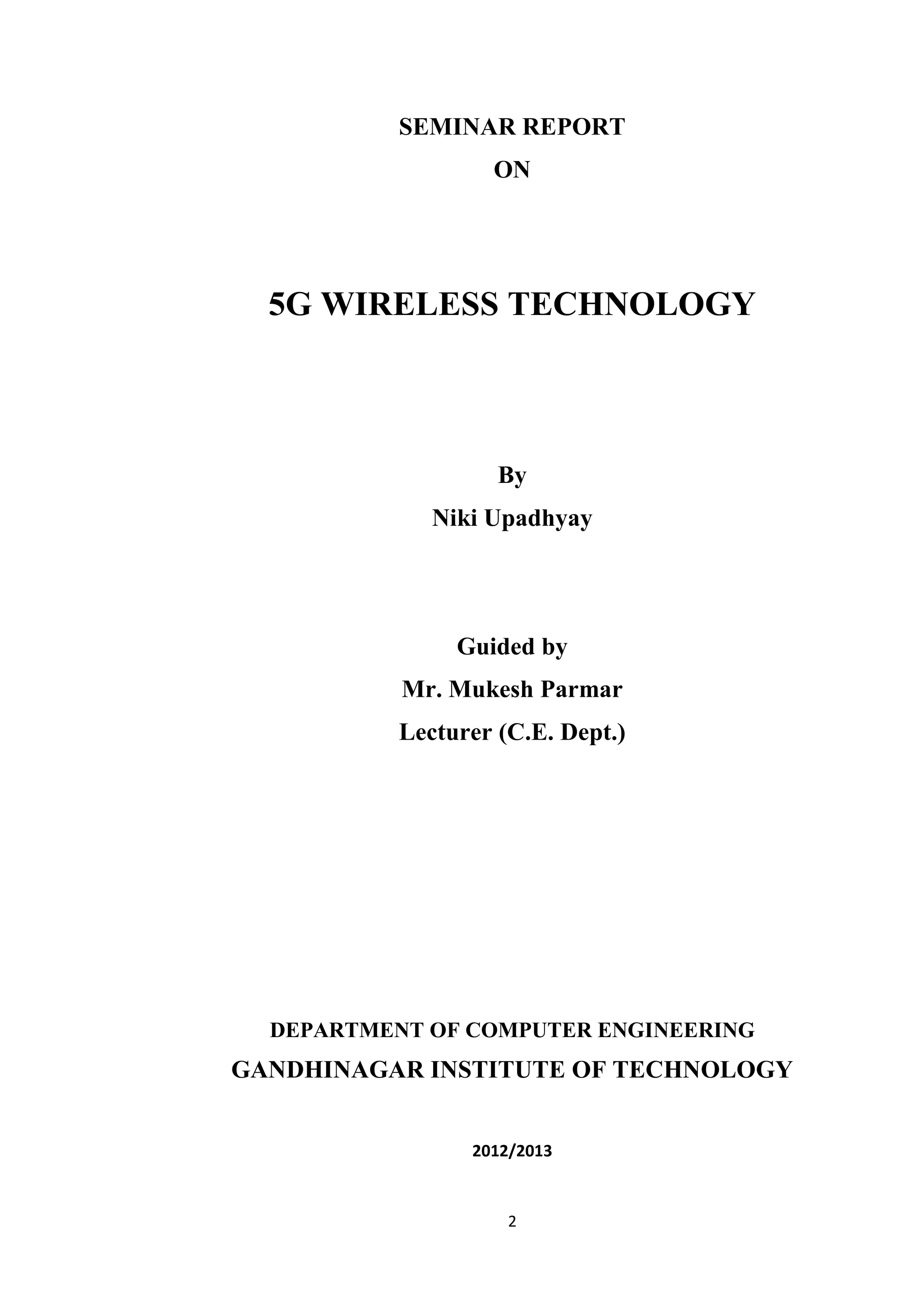 The document discusses the evolution of wireless technologies from 1G to 5G, describing the major characteristics of each generation including their development timelines, data speeds, services offered, standards, and technologies used. It provides a comparison of the generations in terms of these features in a table. 5G is presented as the next major phase of mobile telecommunications offering speeds up to 1 Gbps to support new applications through a unified IP standard architecture.