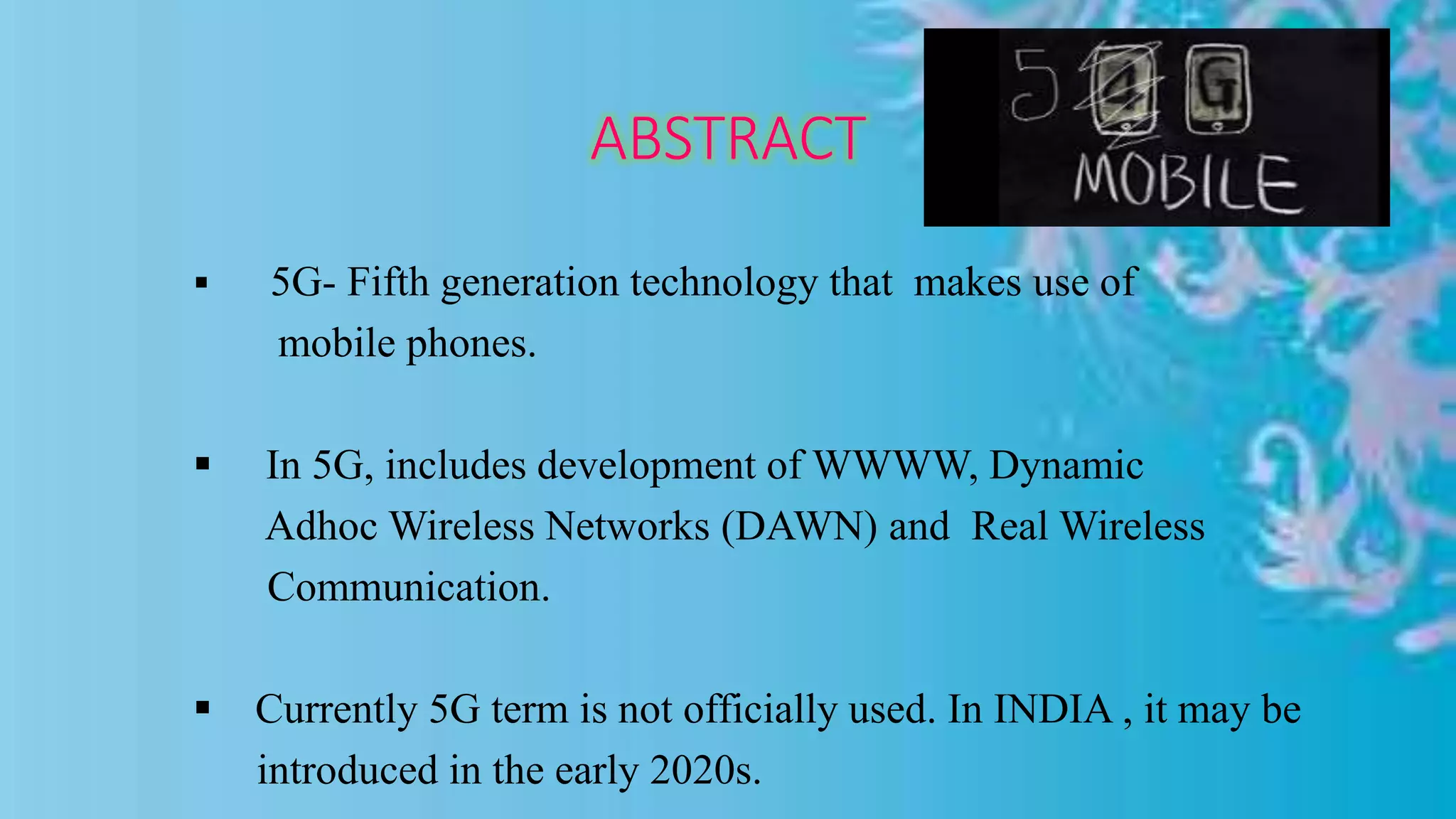 The document discusses the upcoming 5G technology, highlighting its features such as high-speed data transfer, support for dynamic information access, and a wide frequency range. It emphasizes the enhanced capabilities of 5G over previous generations (1G to 4G) and its potential to revolutionize mobile communication by allowing simultaneous connections to multiple wireless technologies. Additionally, it explains the role of light fidelity (Li-Fi) in data transmission, setting the stage for improved user experiences in real wireless communication.
