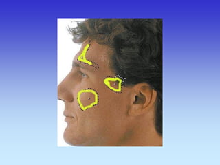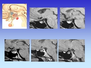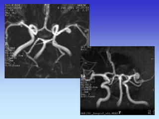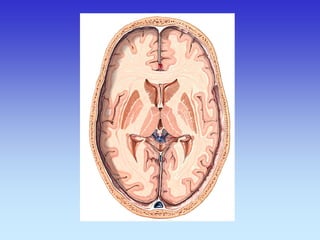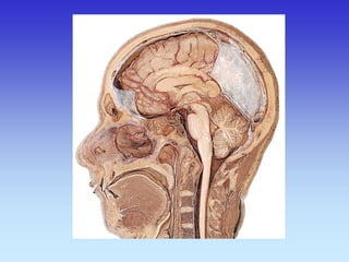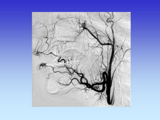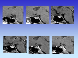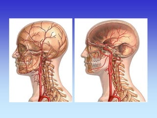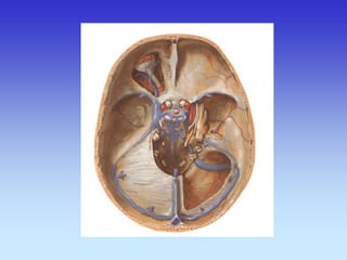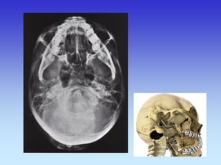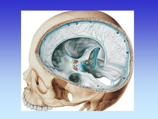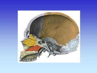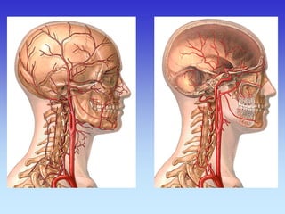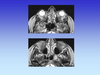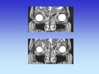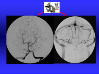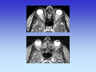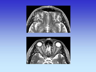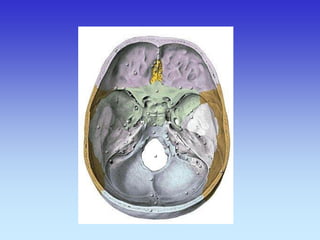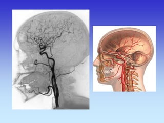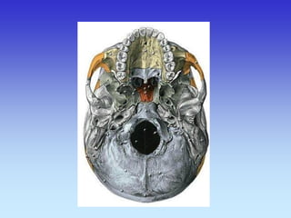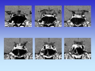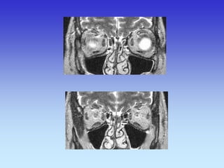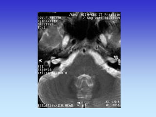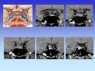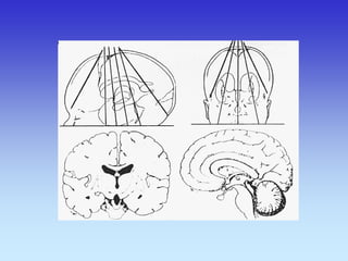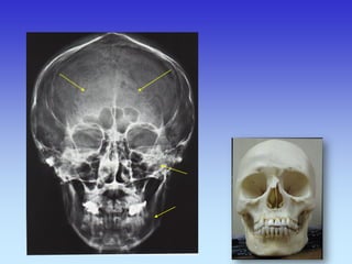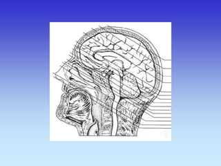 This document provides an overview of radiological anatomy and pathology of the head. It discusses various radiological imaging methods used to visualize anatomy such as bones, brain parenchyma, orbits, sinuses and blood vessels of the head and neck. Specific sections are dedicated to describing cross-sectional anatomy as visualized by CT and MRI of different regions including the skull base, orbits, sinuses and mastoids. Functional MRI techniques are also mentioned.
