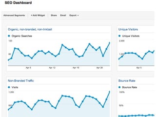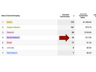 This document discusses 5 reports that provided useful insights and 1 report that did not. It describes how each report helped clarify results and influence actions through customized dashboards, advanced filters, date range comparisons, attribution modeling, and advanced segmentation. The key lessons are that analytics should clarify results and influence actions, and to avoid "Confusion, Redundancy, Irrelevance" (C.R.I.).