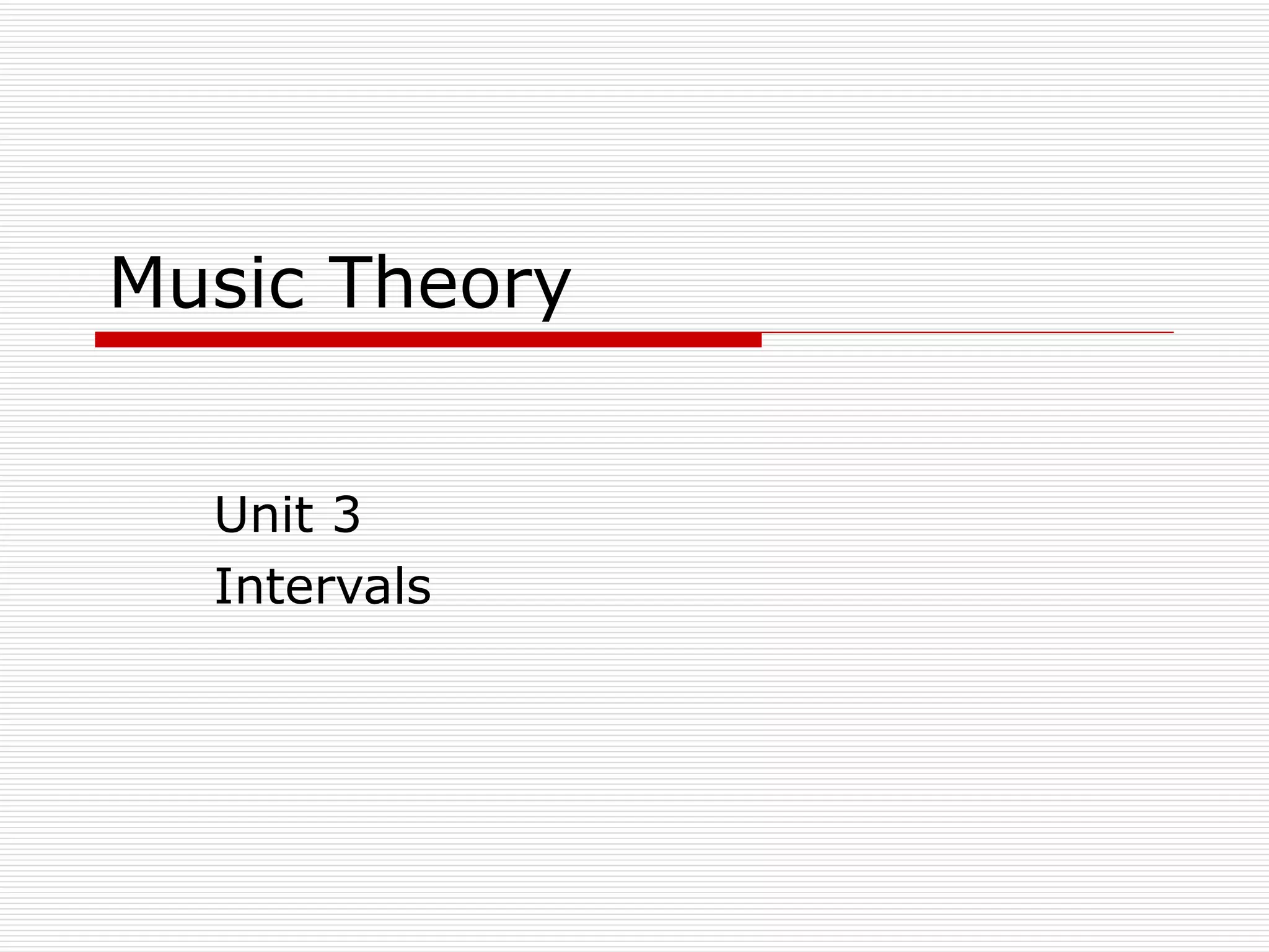 This document provides an overview of music theory concepts related to intervals. It defines major scales as having a consistent pattern of whole steps and half steps. It also lists the order of sharps and flats in a key signature. The document introduces melodic and harmonic intervals and how to count and name intervals based on the number of letter names between the lowest and highest notes. It describes the qualities of intervals within a major scale as either perfect or major and lists which specific intervals have each quality. It also states that if the upper note of an interval is part of the lower note's major scale, the interval will be perfect or major, but may be minor if the upper note is a chromatic semitone lower.